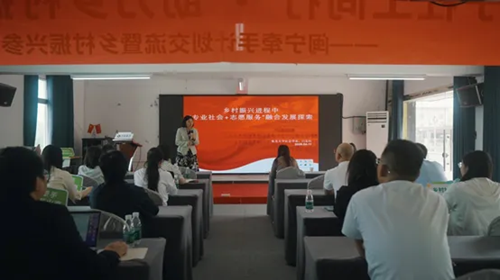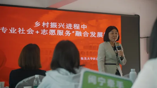 集美大学社会学系的巨东红老师分享乡村振兴中社会工作与志愿服务的融合发展