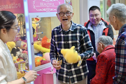 志愿者与福利院社工、院内志愿者还精心筹备了夹娃娃等趣味游园项目。老人们踊跃参与其中,在动手操作间锻炼反应能力,此起彼伏的笑声回荡在院区每个角落,让长辈们在互动中感受节日的喜悦,在陪伴中体会温暖的力量。