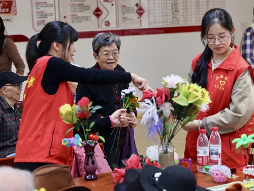 除了丰富的互动体验,志愿者们还为参与活动的长辈们送上日用品和精心制作的中药香囊,这些满载心意的礼物虽朴实无华,却凝聚着社会各界对老年群体的牵挂与关怀,让温暖渗透到生活的细微之处。